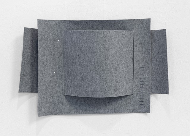 1/4" industrial wool felt, 1/8" designer wool felt, needle felted Croatian wool, Sashiko thread, graphite, grommets.